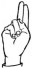 На ћирилици написано КАЋА ЛАЛИЋ састоји се из 9 слова [?]. Исписано ћириличном једноручном азбуком за глувонеме: